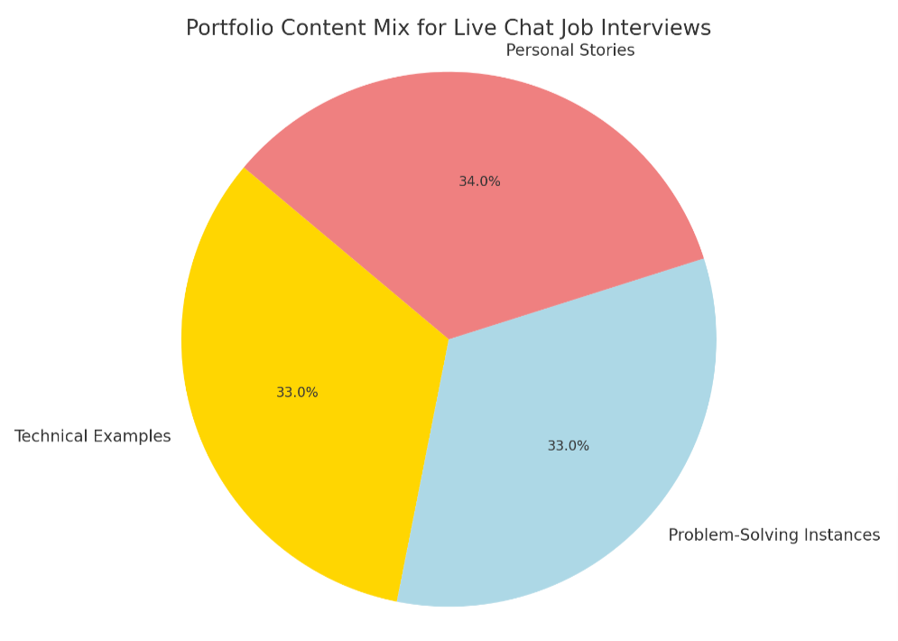 A well-crafted portfolio demonstrates your professional background with a clear, visual impact. It’s an effective tool for showcasing your skills and achievements, allowing you to stand out from other candidates in live chat job interviews.
