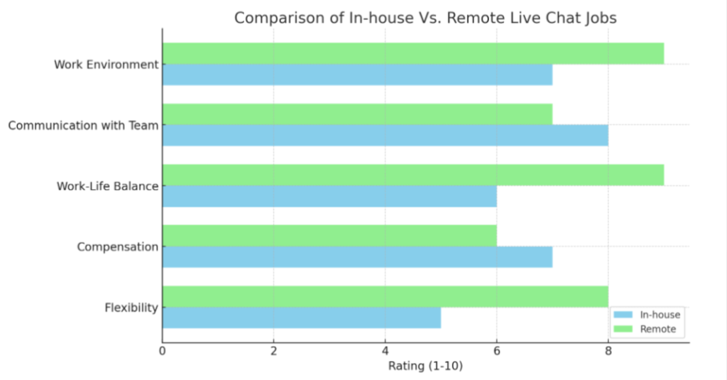 • Deciding between an in-house or remote live chat job involves considering your personal preferences on workplace structure, compensation, social interaction level, flexibility, and your ability to manage a healthy work-life dynamic.