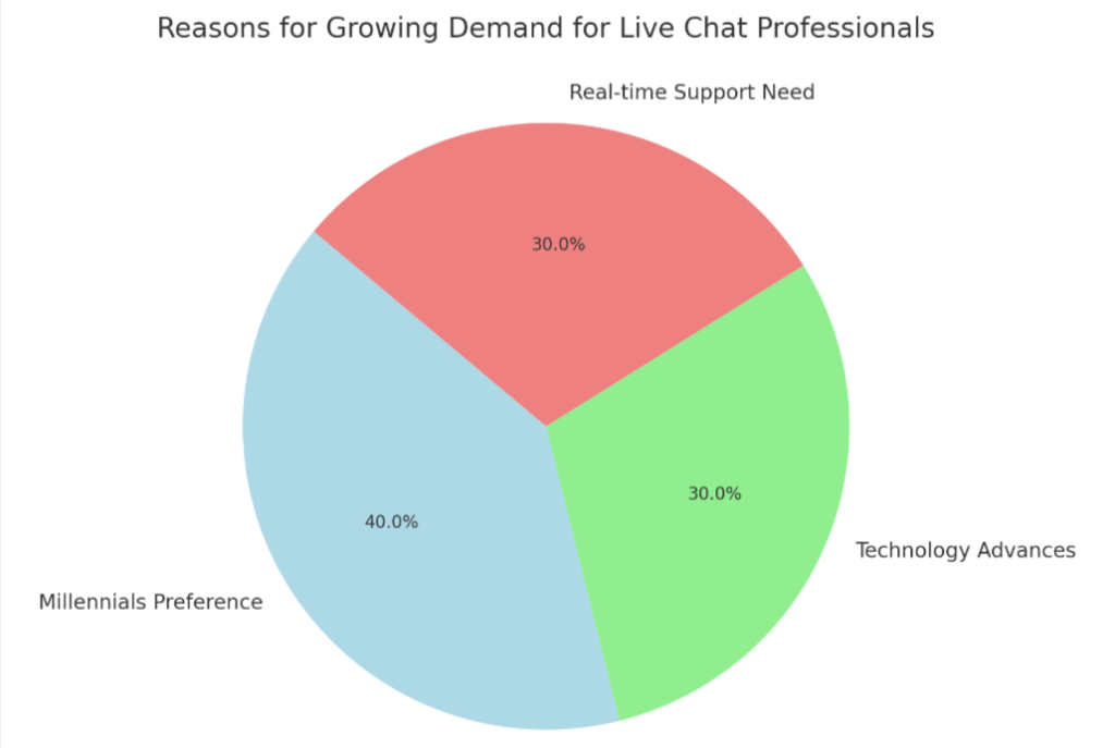 - Online customer support: With the increasing preference for online channels, companies are focusing on enhancing their online customer support services, resulting in a higher demand for skilled live chat professionals.