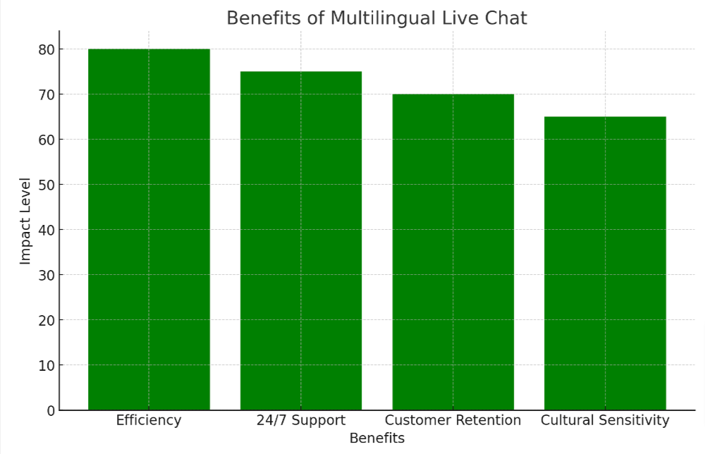 Multilingual support in live chat leads to improved customer experience, increased efficiency, and greater customer retention. It allows businesses to connect with a wider audience and provide personalized service in their native language.
