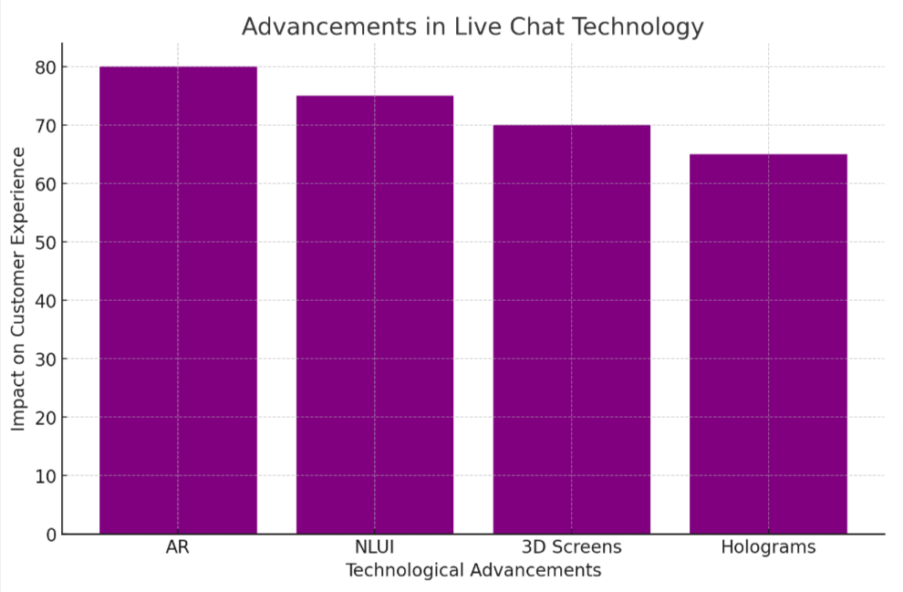 - Future advancements like voice and video chat integration, screen – sharing, augmented reality (AR), natural language user interfaces (NLUI), 3D screens, and holograms will further personalize and enrich the live chat experience.