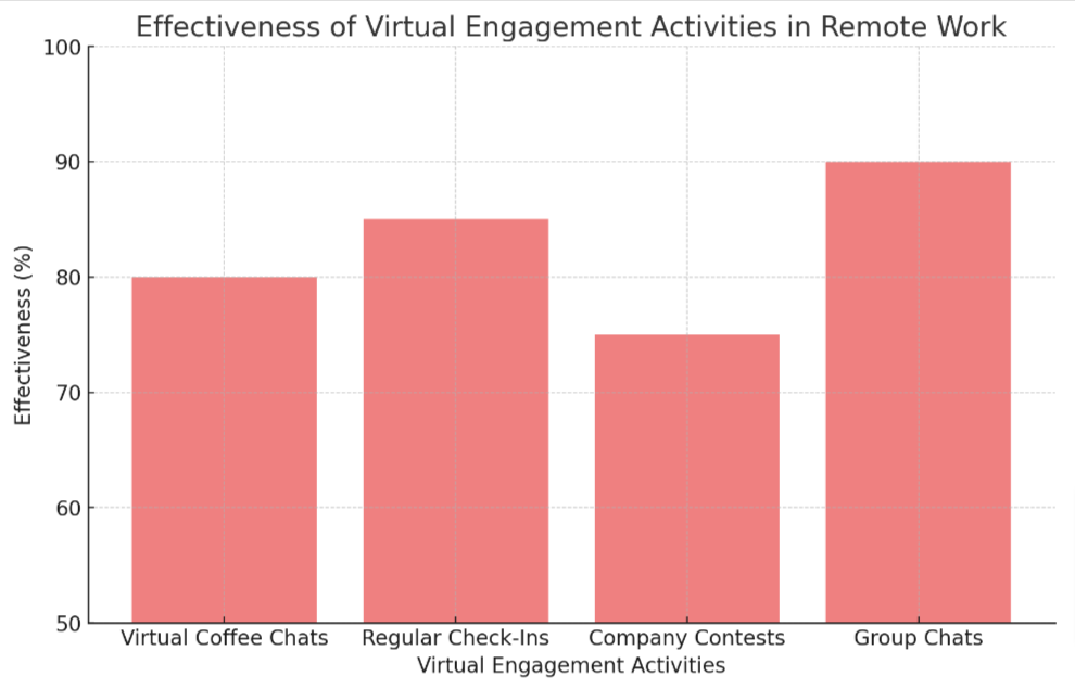 • Hosting virtual coffee chats and scheduling regular check – ins helps employees feel connected and valued, boosting morale in a remote work environment.