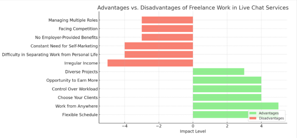 Embracing the freelance market as a live chat service provider comes with several perks and challenges. Let’s examine the key advantages and disadvantages.