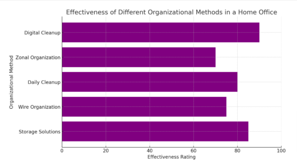 Set up designated zones for different activities in your home office, such as a work area, reference section, and storage space. Utilize desk organizers to keep frequently used items easily accessible.