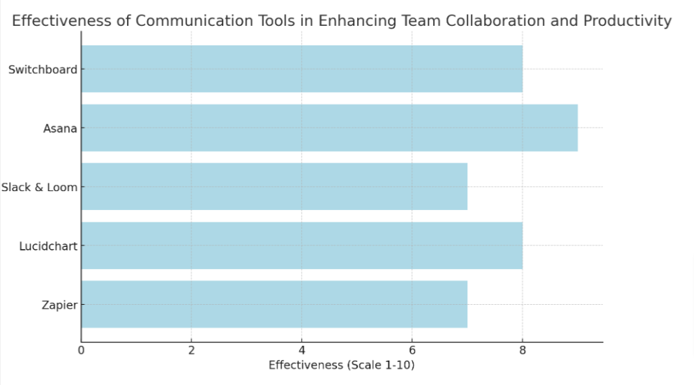 Real-time collaboration is made easier with Switchboard, project management becomes more streamlined with Asana, and asynchronous communication is facilitated through Slack and Loom.